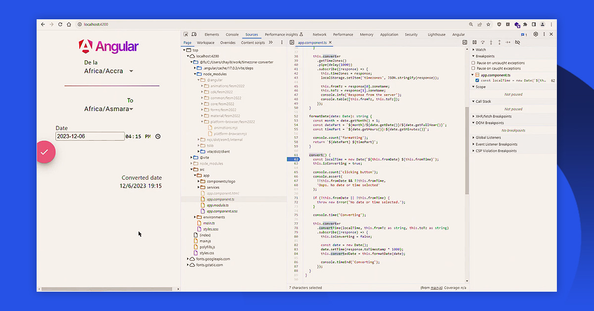 “Sources interact with the JavaScript that is behind the application.” It allows us to pause the execution of code at specific breakpoints that we set,” explains Cristian. “We can see the call stack, understand which function calls happened before we reached our breakpoint, and track the execution flow.”