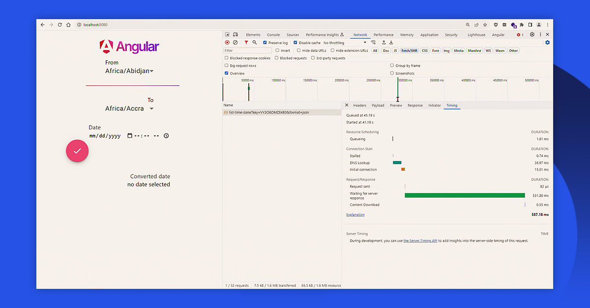 The Network tab acts like a control tower for your application’s traffic, keeping track of each request that goes out from your page and every response that comes back.