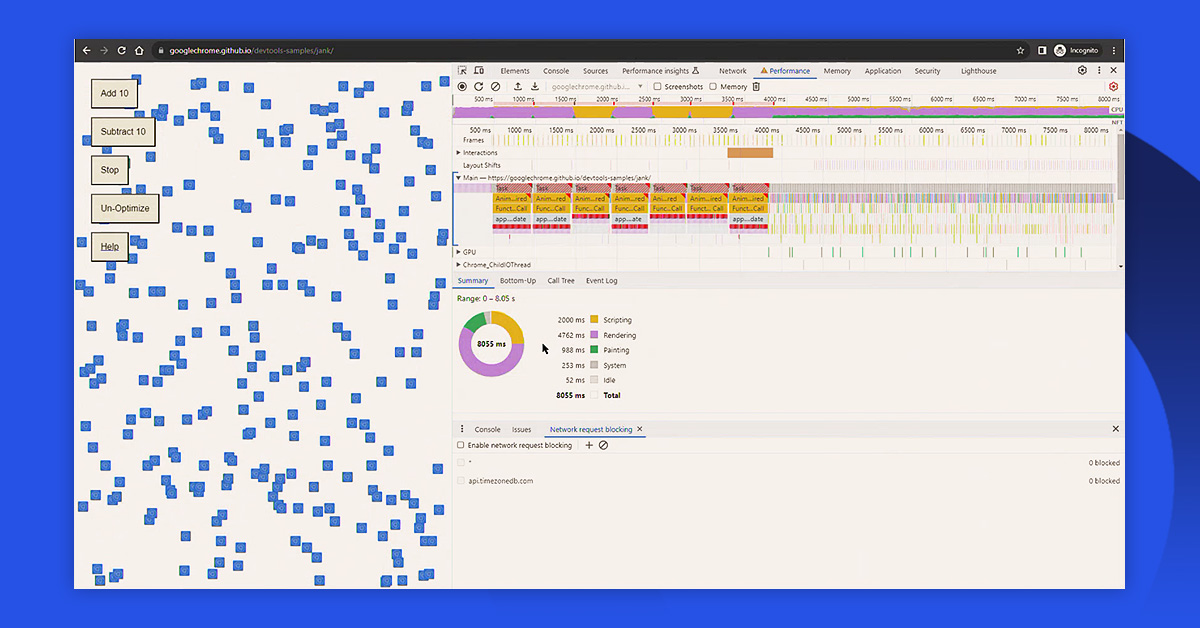 The Performance tab is similar to placing a stethoscope on your web application. It shows how well its heart (CPU) is working and how smoothly its lungs (rendering engine) are functioning.
