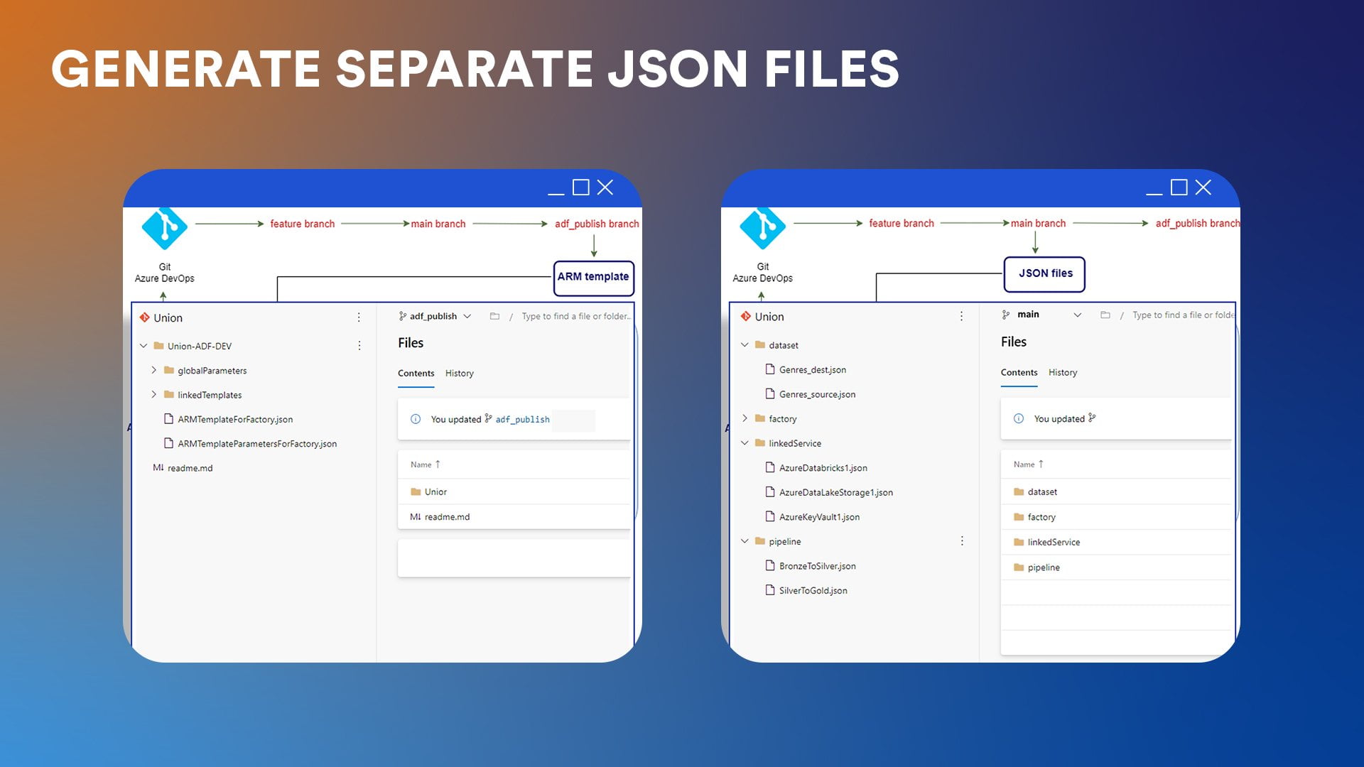 While the ARM template approach follows Microsoft’s official recommendations and provides a more standardized way of deploying ADF pipelines, the custom JSON file method offers more flexibility and control over the deployment process.