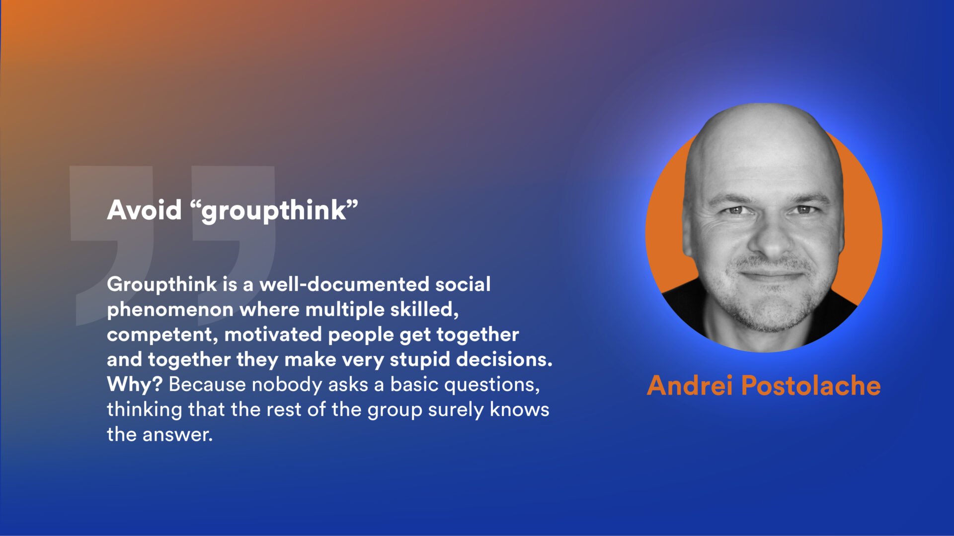 Andrei agrees. He thinks that junior developers may be the perfect antidote to “groupthink” — a situation where everyone in a group does not ask an important question, assuming the rest of the people already know the answer. Andrei explains that sometimes a “stupid” question can bring clarity to a situation and prevent misunderstandings.