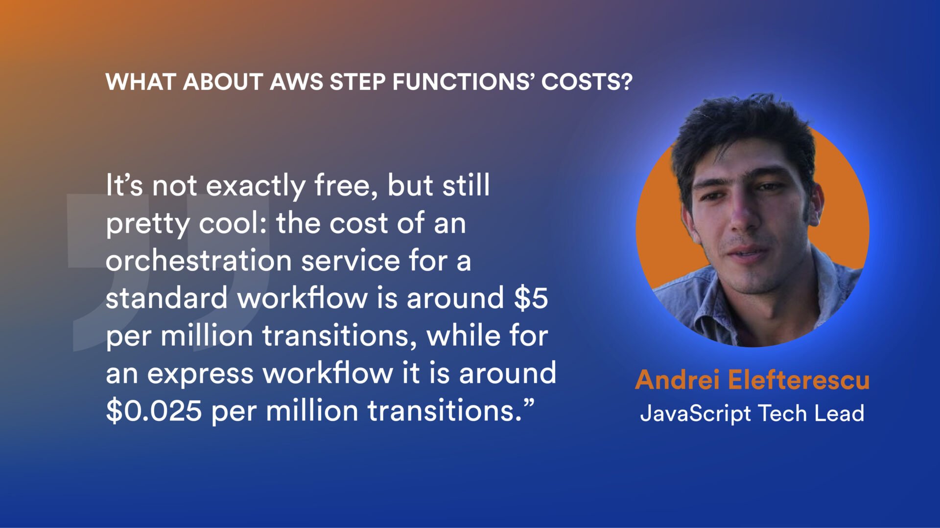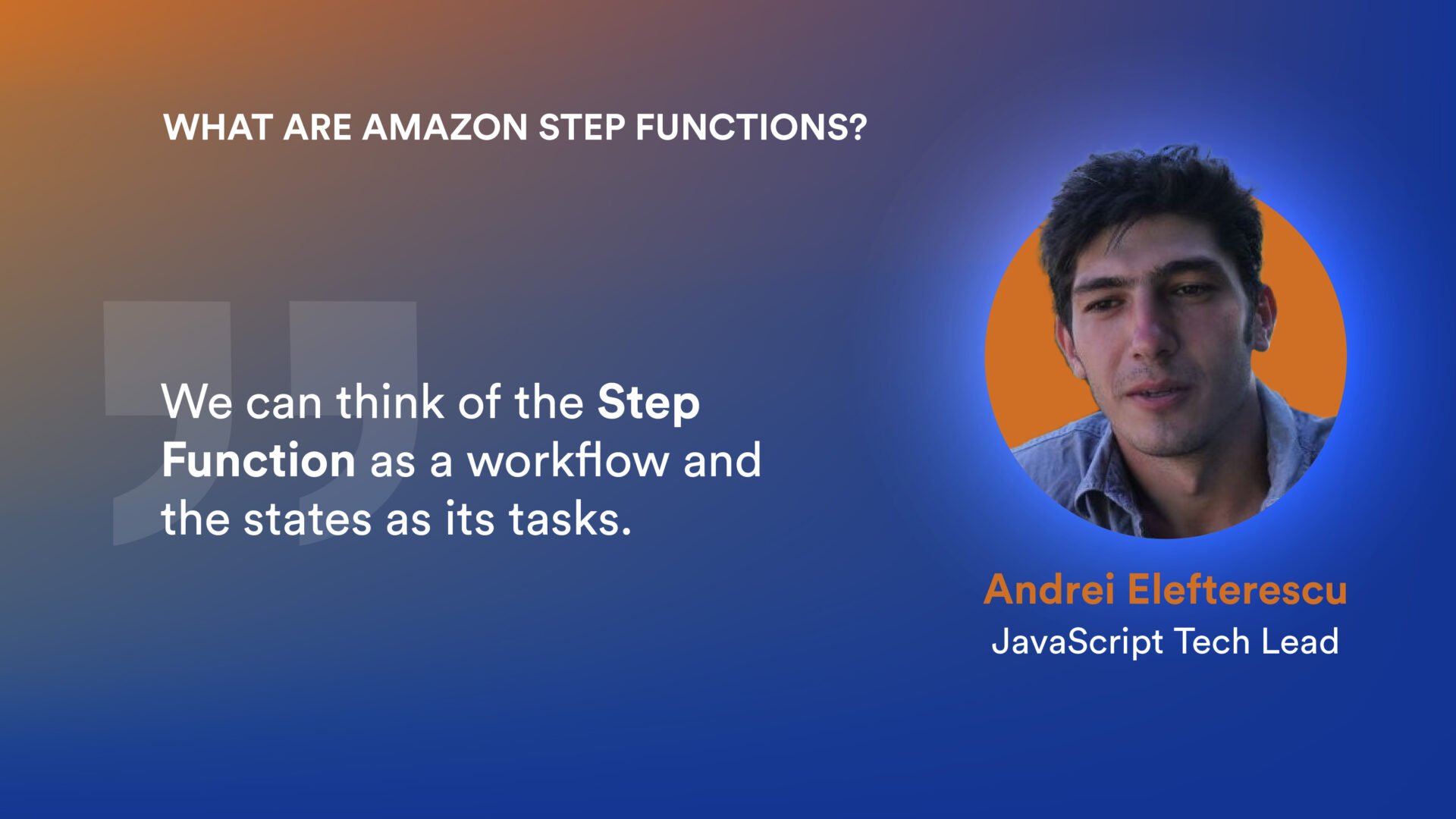 This is where Andrei Elefterescu steps in to explain what Amazon Step functions is.