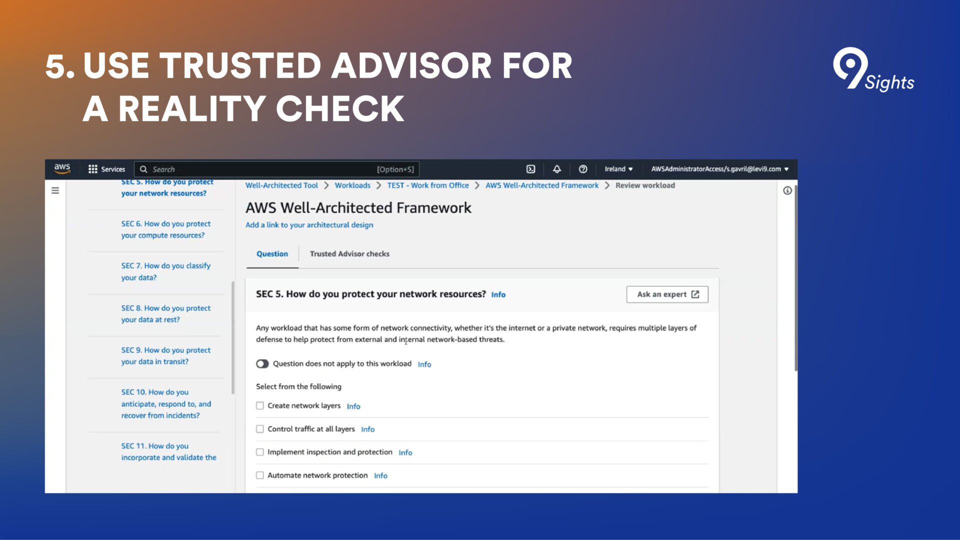 By implementing the Well-Architected Framework early in the process, companies can feel confident that their cloud-based applications meet the highest standards for security, reliability and operational excellence. To prove his point, Sebastian likes to quote Jeff Bezos on this: “Good intentions never work. You need good mechanisms to make anything happen.”
